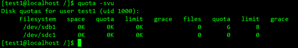 若直接使用quota -sgv/-suv,不带有**目标用户组或者目标用户**的话,其指令默认显示当前用户的quota值: